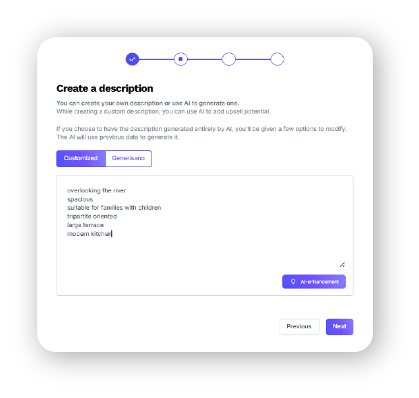 UNAPREĐENI PRODAJNI OPISI MAIIA u sebi ima integrisane alate za AI generisanje ili unapređenje prodajnih opisa, gde specijalizovani agent za pisanje napravi prodajni tekst od par treza za nekoliko sekundi u nekoliko editabilnih varijanti. LINKOVI NA DRUGE DOMENE I AGREGATORE Nekretnine i celi objekti koji se nalaze u okviru jednog prodajnog agenta na sajtu ne moraju biti na istom domenu. MAIIA će lako usmeriti korisnika na traženu nekretninu i na sajt agencije na kojoj se nekretnina nalazi. SCENARIJI ŽIVOTNIH SITUACIJA Nije isto kupovati nekretninu zarad iznajmljivanja, života u paru ili sa porodicom. Srećom, MAIIA prodajni agent se može prilagoditi svakoj od ovih situacija i postaviti se u perspektivu žvotne situacije i potreba drugačijih kupaca, olakšavajući im odluku o kupovini na sličan način na koji to rade vrhunski agenti za nekretnine.