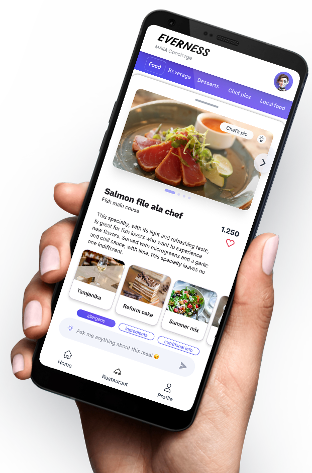 MAIIA će se postarati da svakom vašem gostu predstavi celokupnu ponudu, odgovori na svako pitanje i predloži jelo i piće prema ličnom ukusu gosta.